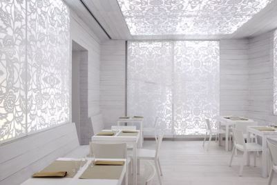 Blanco Milano, designed by BPMstudio in Milan, is an example of howthe architecture is carved from light. Inthe atmosphere created by light, there’sa widespread sense of lack of scarcity.Everything seems quiet and elegant.Blanco Milano starts the morning offright with breakfast and lunch with acareful mise-en-place attitude and thenthe evening begins with a lively apertifwhere you will enjoy the high energyfeeling. Open from morning to evening,the cocktails are certainly a distinctivehighlight.