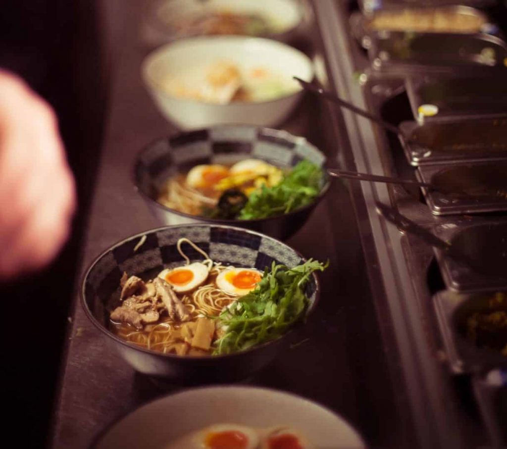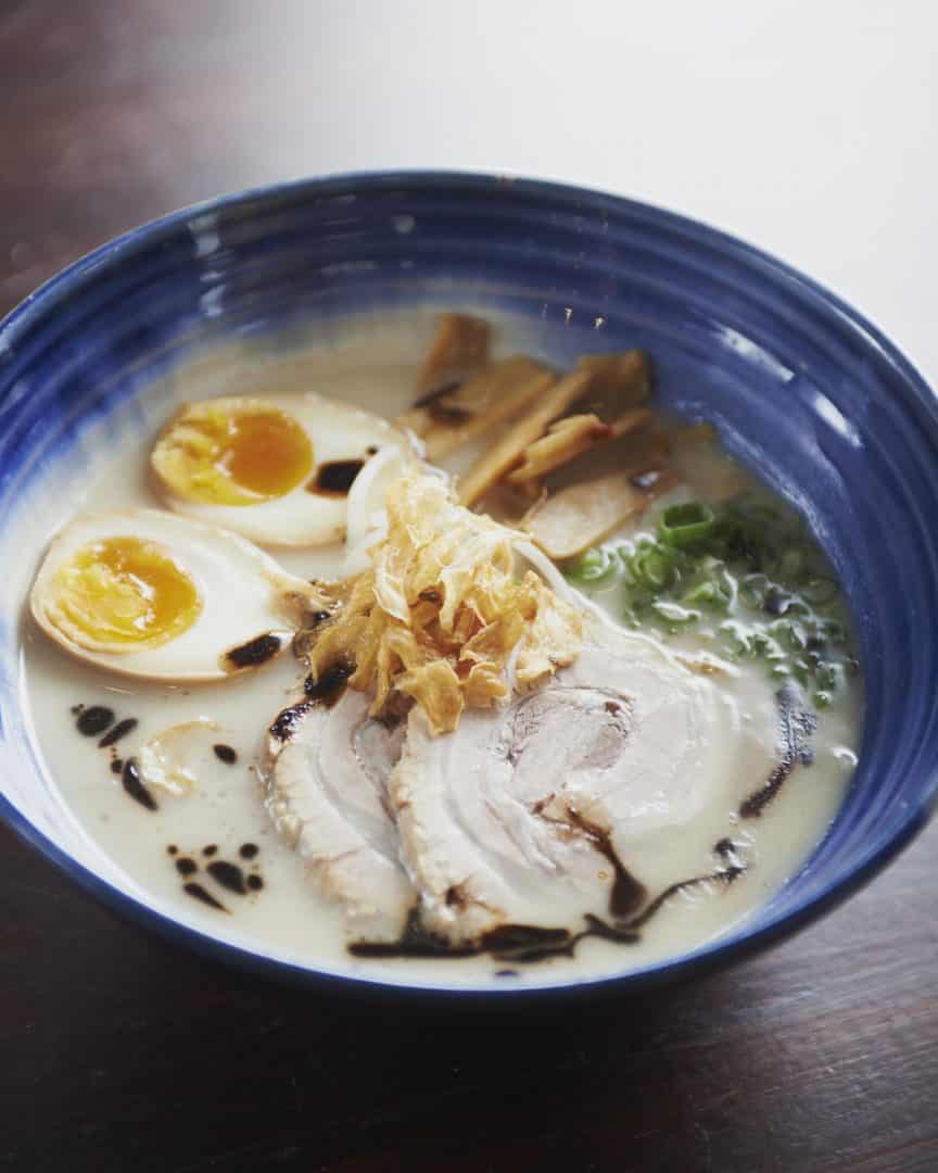 Three years on since the ramen boom of 2012, when Bone Daddies Ramen Bar arrived in Soho with a bang, London’s hunger for ramen shows no signs of waning. Bone Daddies’ Soho site was a first for chef proprietor Ross Shonhan, the former head chef of Zuma London and Nobu Dallas.Playfully named in honour of the rich bone stock that forms the basis of ramen dishes, Bone Daddies offers a menu featuring up to ten innovative and exciting flavours, different toppings and the crucial ‘Nitamago’, a marinated soft-boiled egg, as well as a variety of snacks. The traditional cloudy broths of fish, pork and chicken bones are stirred up with a delicious dash of originality, with Ross taking full advantage of the lack of conventional rules regarding ramen noodle dishes to push the boundaries and shift perceptions of what Japanese food can offer. Bone Daddies’ decor imitates the rough and ready style common in Japanese Izakaya. High stools and benches furnish the restaurant and bottles of seasonally infused Shochu (try saying that after a few beers) are displayed on the walls, creating a casual venue.