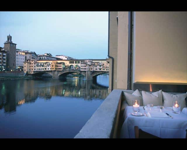 Borgo San Jacopo is the restaurant of the Hotel Lungarno, both are part of the hotel management company of the Ferragamo family. The atmosphere is lovely, and it could not be otherwise, since it is a leader in the luxury segment. In the room overlooking the Arno, the light colours contrast with the enormous dark cabinets, which go from ceiling to floor. Thecuisine is traditional, but lightened by creative touches.