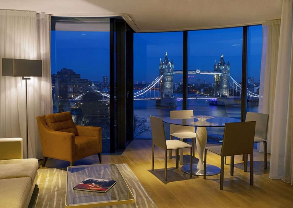 Having opened on 10th March 2014, Cheval Three Quays has raised the bar in the serviced apartment sector. The open plan apartments boasts dramatic floor to ceiling windows with unrivalled views across the River Thames, Tower Bridge, The Shard and City Hall. Each apartment has been thoughtfully designed to provide a home-from-home feel. Each apartment has a grand entrance with door portals alternating between a beautiful veneer and lacquer coating. Apartments facing East, South and West can continue to enjoy the stunning vista from their own private glass balconies with modern stainless steel balustrades, while South facing apartments will overlook the magnificent water sculpture by William Pye that drops over vertical stainless steel panels.The decor throughout the apartments is a fusion of British and European influences. Classic Lyndon furniture features prominently in the apartments, with elegant sofas, armchairs and stylish leather headboards.