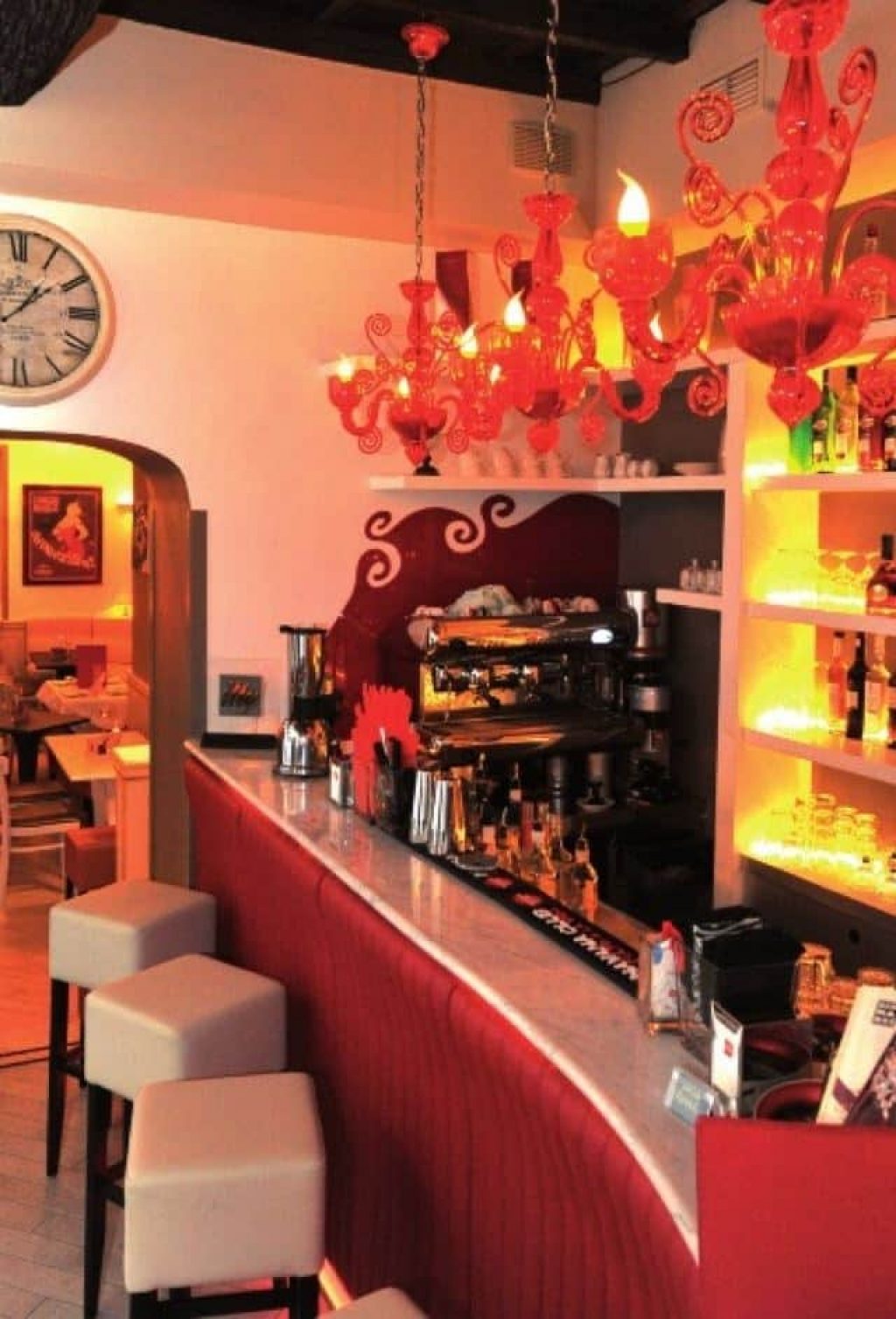 Between piazza Navona and the Pantheon, Cordon Rouge is at the crossroad of style and coziness, with an international allure and an Italian soul. Philipe Stark tables and chairs, Murrina pendants and handmade sofas counterpoint a collection of retro pictures and a dj console. The restaurant menu, by chef Edilberto Brignone, varies every week. At Cordon Rouge you can find specialities served all day, from the club sandwich to a wide selection of salads, from classical revisited roman specialities to a wide selection of full breakfasts. Particularly honored aperitif from 6 p.m. to 9 p.m. with a wide choice of drinks and appetizers.