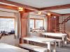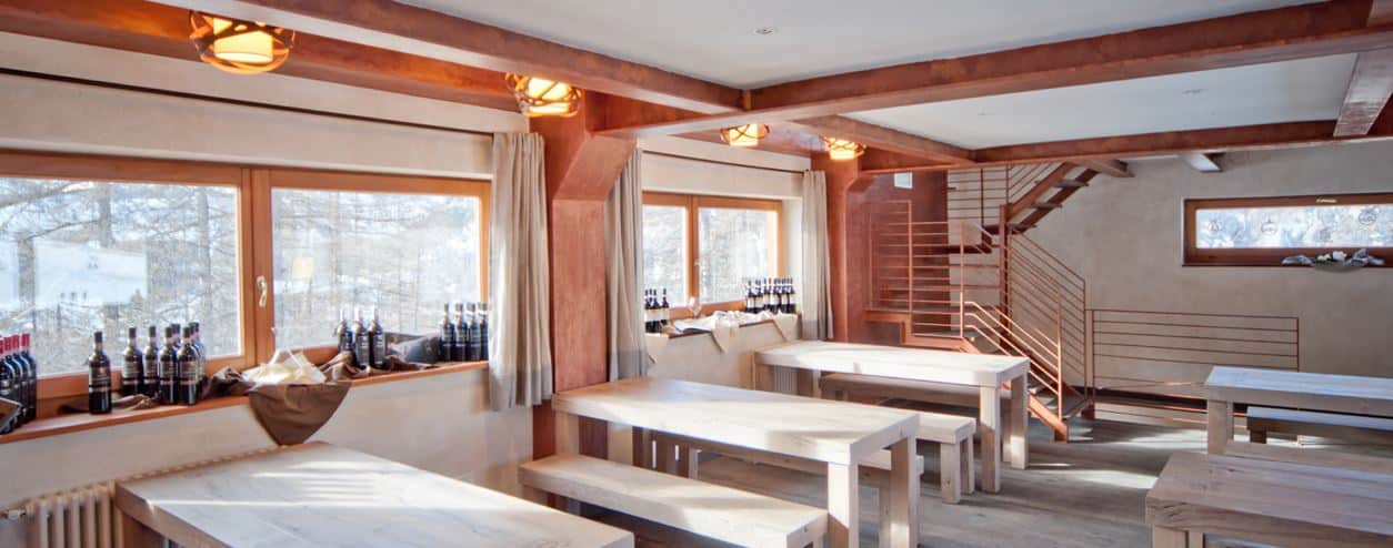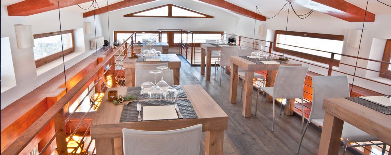 A warm, inviting atmosphere that is also refined and elegant. The main materials used in minimalist style are wood, stone and metal, over all three floors furnished as bar, restaurant for a fast lunch and dining room for lunch and dinner with full table service, give the restaurant the feel of a refined mountain residence. Nothing is left to chance in a context where quality, welcome and customer service are the priority. A panoramic outside terrace and a seating area complete the reception areas.