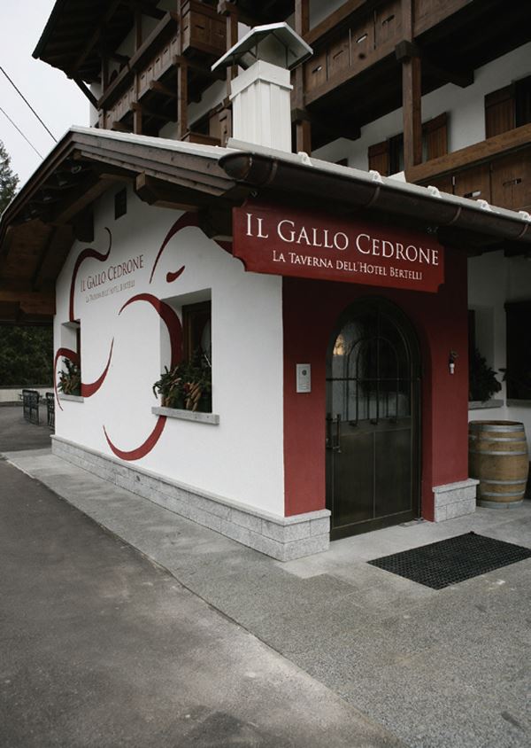 Il Gallo Cedrone is a tavern of Hotel Bertelli, an extention of its customary friendliness and quality. A place where you can spend pleasant evenings tasting typical products of Trentino, great wines and spirits. After meal you can eather listen to music or retreat to the cigar room.