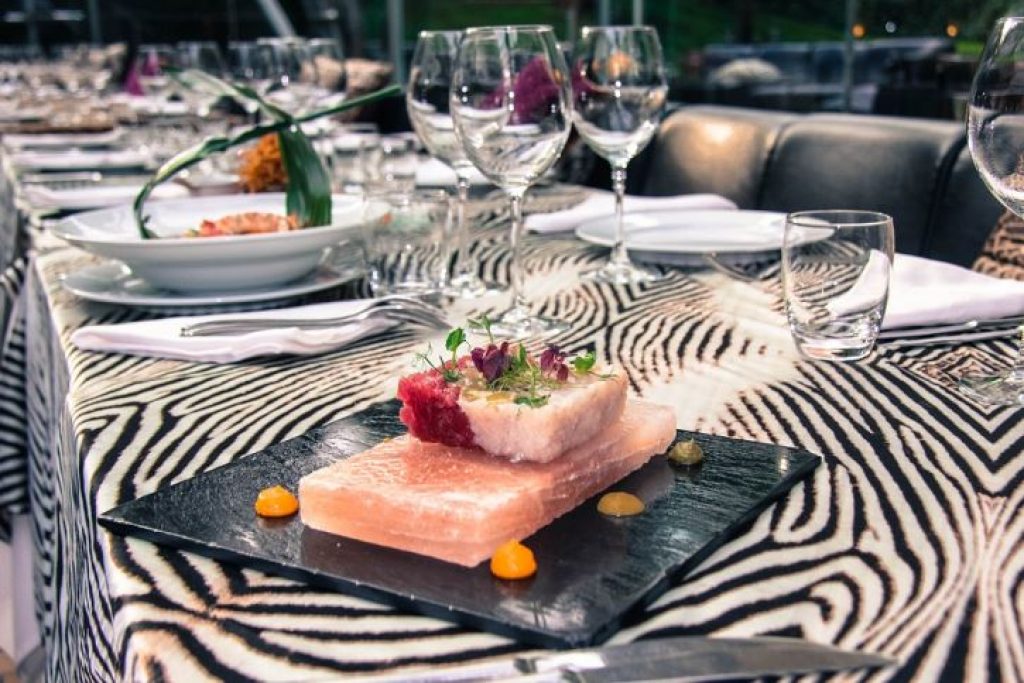 The location is inside the ParcoSempione at the base of theTorre Branca. The Just Cavalliis open all year round. Therestaurant is defined by a semicircularsteel structure with glasswalls and ceilings, the entrance ischaracterized by bevelled mirrorswith bronze details, accented witha side of black glossy lacqueredwood slats