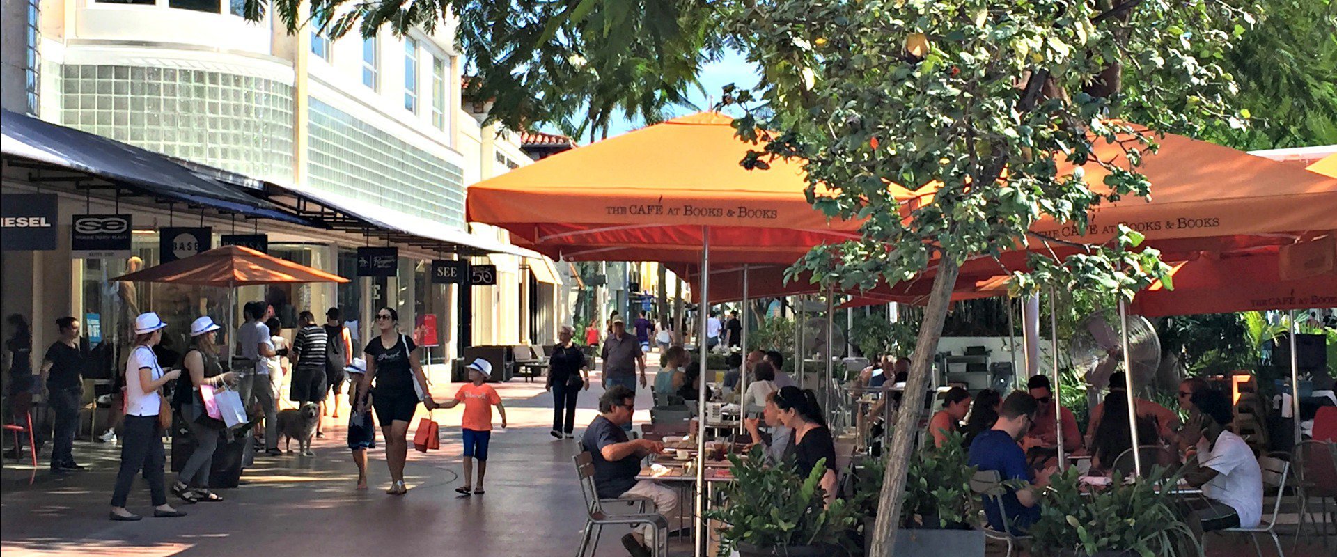 Located just a few blocks off the beach, Lincoln Road Mall is South Florida’s premier outdoor shopping, dining, and entertainment destination. This mile long, pedestrian-only promenade boasts a happening street scene with throngs of local and out-of-town visitors, excellent shopping, and terrific dining options. Lincoln Road is lined with mostly mainstream clothing stores such as ZARA, Gap, Anthropologie, Forever 21, NIKE, Athleta and many more.