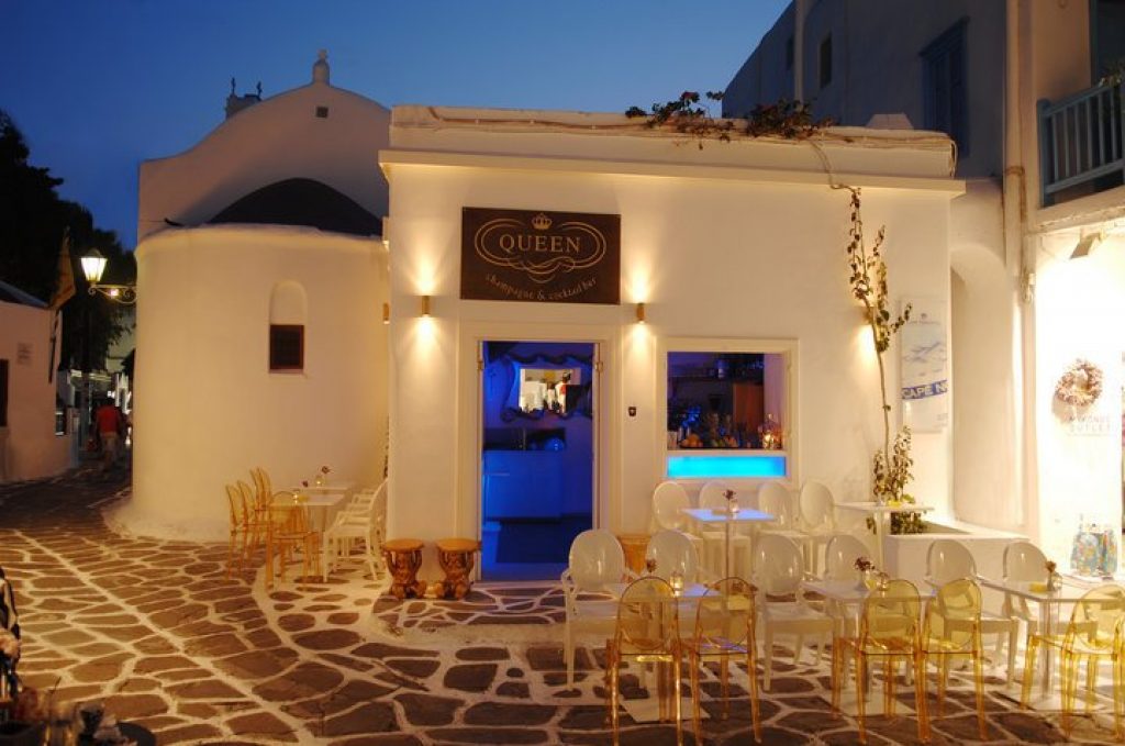 Located steps away from the beautiful center of Chora, Queen of Mykonos is an ideal setting for enjoying the vibrant local scene while sipping on your favorite cocktail and snacking on delicious appetizers. Queen is a champagne and cocktail bar, a great meeting point to mingle and sip exotic handcrafted cocktails while soaking in the cosmopolitan island vibes. For those who want to relax and have fun, enjoying a coffee in an excellent atmosphere it is open from early in the morning. As nightfall comes, one may indulge in mouth-wareting cocktails at the bar, with endless fun guaranteed until the early morning hours. Let your memorable Mykonos experience begin at this inimitable city centered bar!
