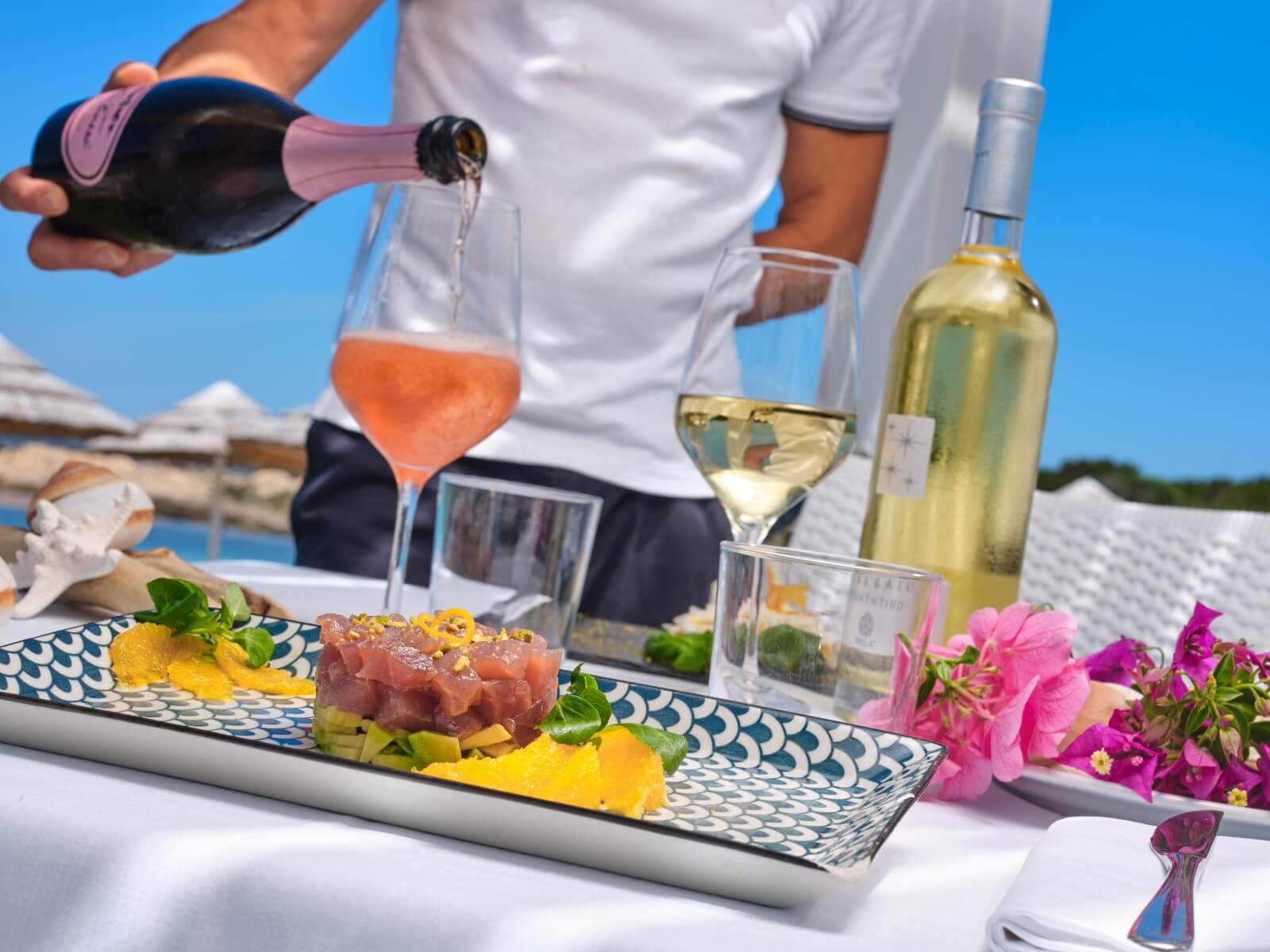Tartarughino Beach is a place that comes alive 24 hours a day: from the first light of dawn (bar, pastry shop, continental breakfast), to lunch (restaurant, pizzeria, onboard catering for boats with dockside delivery), to aperitif time (enhanced by homemade creations prepared and served by the chefs, to the rhythm of music played by top DJs), to dinner (pizza, pasta, meat and fish — a cuisine highly appreciated by guests), and finally the after-dinner hours (piano bar and fashion music). A rotation of musical styles and events has made it a true hotspot.