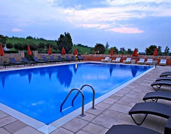 Après une restauration minutieuse, le Relais Sant’Uffizio du XVIIe siècle a retrouvé sa splendeur d’antan : il représente aujourd’hui une oasis romantique de paix, nichée au cœur des vignobles du Monferrato. Les chambres sont élégamment aménagées et dotées de tout le confort moderne. Le raffiné restaurant deux étoiles Michelin, la Locanda Sant’Uffizio Enrico Bartolini, est dirigé par le talentueux Chef Résident Gabriele Boffa et célèbre une cuisine d’auteur – un hommage à la biodiversité italienne inspiré de la tradition, avec des délices sublimés par l’utilisation du précieux truffe et des meilleurs produits locaux. Aquanatura Wellness & SPA n’est pas seulement un magnifique centre de bien-être pour l’âme et un luxe pour le corps, idéal pour se régénérer et retrouver son équilibre intérieur. La lumière dorée du coucher du soleil filtre à travers les grandes baies vitrées, se reflétant sur l’eau de la piscine et rappelant le vert émeraude du magnifique parc boisé à l’extérieur.
