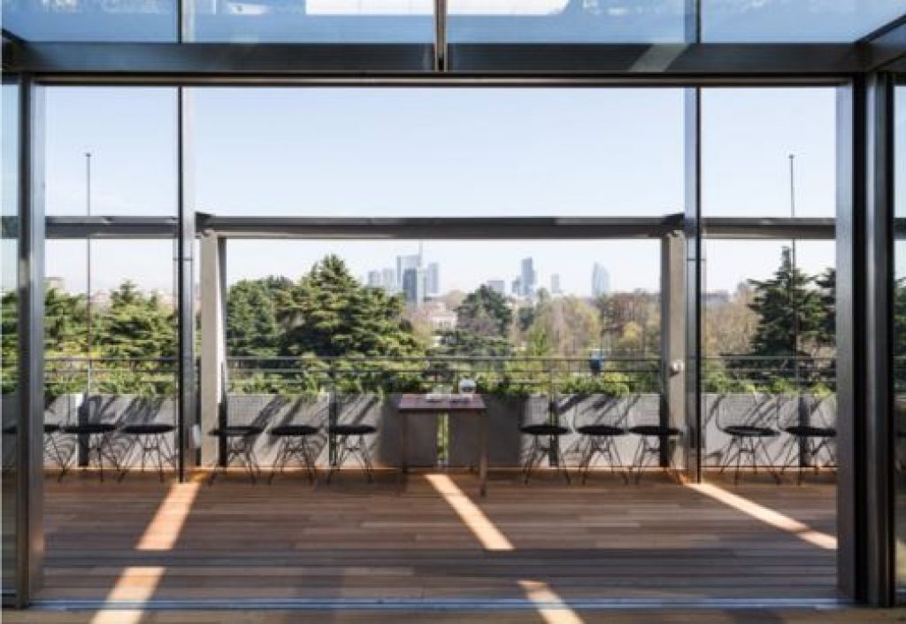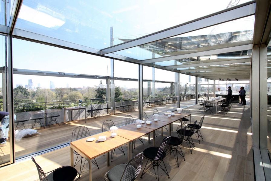 Sur la Terrasse Triennale, sur le toit du musée éponyme, une vue imprenable sur le skyline de Milan et une cuisine italienne dans le format de l’osteria moderne, à déjeuner et à dîner, même après 23h avec une zone cocktail, accessible au public même sans passer par le restaurant. Ce dernier est dirigé par Lorenzo Rossi, barman avec une solide expérience et une passion pour la recherche, qui a élaboré une carte de cocktails internationale et propose aux convives, lorsque les circonstances le permettent, des cocktails sur mesure, créés en fonction de l’écoute et de l’instant.