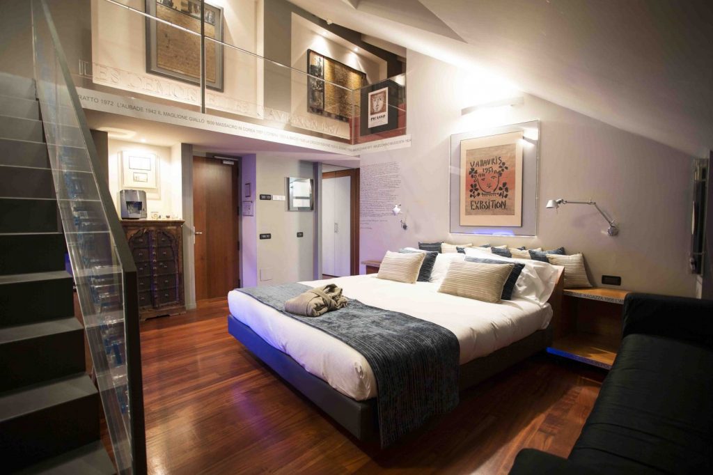 Hotel Italia, in cui l´arte e protagonista di un nuovo concetto di accoglienza. Attraversando gli spazi comuni, dal ricevimento al bar, dalla sala lettura al giardino, fino al momento in cui si entra nelle camere, si percepisce l´amore e la passione del collezionismo in tutte le sue forme, come in una dimora privata. Le camere d’arte nascono come naturale manifestazione di questa ricerca.