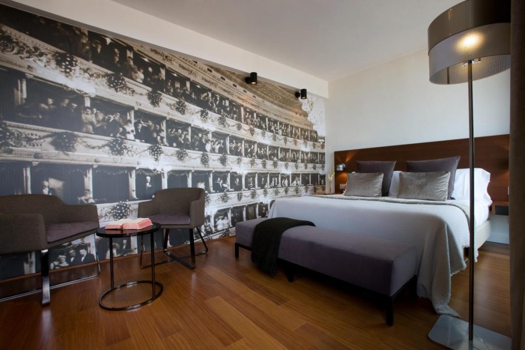Hotel Milano Scala un raffinato boutique Hotel con 62 camere distribuite su sette piani, 4 Suite e 10 Junior Suite tematizzate secondo importanti opere liriche e arricchite da oggetti di scena. Al piano terra un raffinato lounge bar, un delizioso ristorante e un salotto con libreria tematica multimediale. All’ottavo piano una spettacolare terrazza affacciata sui tetti del centro storico. 3 sale riunioni attrezzate per videoconferenza, una piccola palestra e un garage riservato, completano la dotazione dei servizi alberghieri.