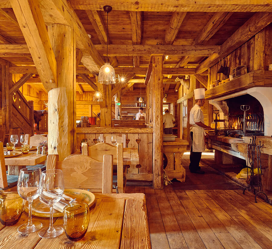 Una cucina autentica, carne o pollame cotto alla griglia , tipica specialita di montagna da condividere con gli amici o la famiglia. In particolare qui troverete un’atmosfera calda all’interno del ristorante grazie all’accoglienza dei proprietari, all’arredamento e al grande camino che riscalda il locale. Si puo anche gustare specialita di montagna, tra cui una selezione di fondute.