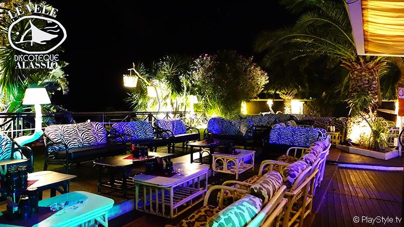 Quello del mitico Franco Becchio e il ‘place to be’ per chi vuole trascorrere una serata davvero cool sulla riviera ligure. Siamo ad Alassio in via Francesco Maria Giancardi, a picco sul mare di fronte all’isola Gallinara. Le Vele e inserita in un meraviglioso giardino di palme e pini marittimi, notevole, la terrazza sul mare, recentemente rinnovata, 1500 sono i posti a sedere, tutti in vimini rivestito da tessuto leopardato. Il locale, aperto da luglio a settembre, ha una vasta gamma di proposte musicali dalla musica dal vivo col repertorio italiano a performances di djs internazionali, fino all’organizzazione di feste a tema ed eventi. La clientela e molto esclusiva ed elegante. Dura selezione all’ingresso: meglio pensarci prima e prenotare un tavolo (i migliori sono quelli che affacciano sulla pista).