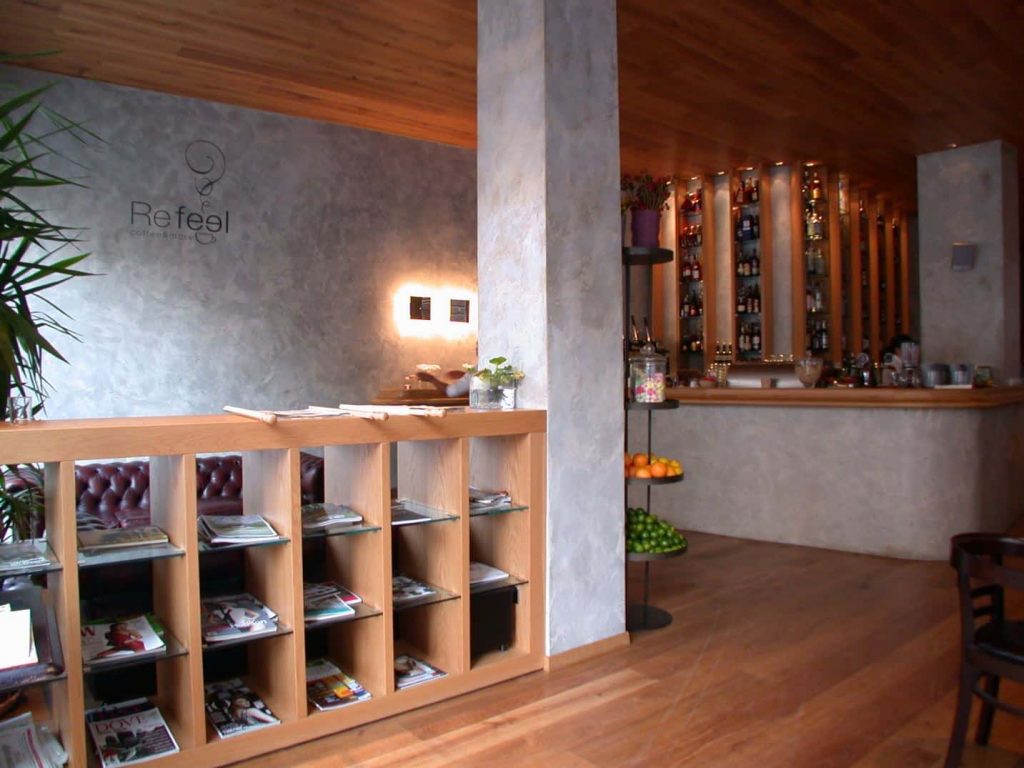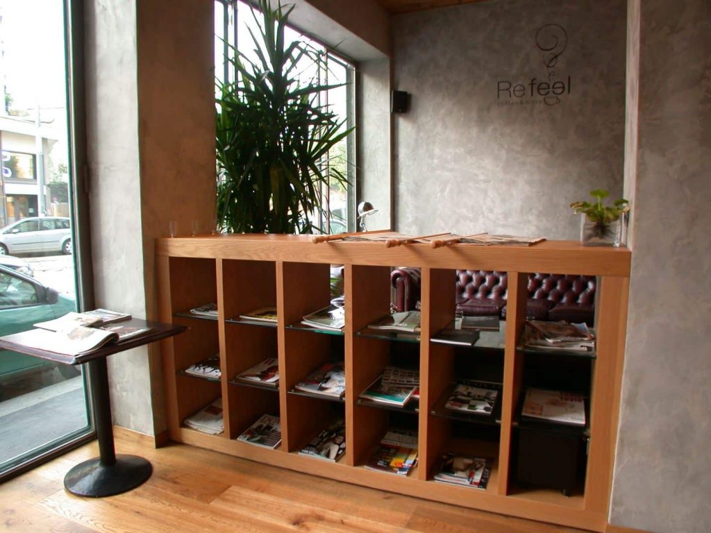 A due passi da Porta Romana, inun’area ricca di suggestioni storichelegate alla dominazione spagnola,Refeel si trova al piano terra di un signorilepalazzo anni ‘60. Imponente ilbancone di 12 metri, i piani in resinaepossidica, il massello in rovere invecchiato.Altra caratteristica del Refeelsono gli eleganti divani Chesterfieldcolor testa di moro per un ritrovodedicato al relax, ma anche vitale edinamico dalla mattina alla sera.