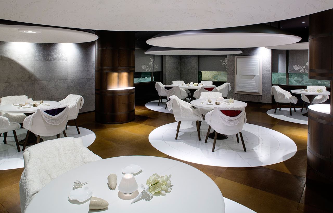В своем новом месте, прилегающем к склонам, Le 1947 показывает изысканныи декор, обрамленныи кожеи, специально созданныи Sybille de Margerie. Именно в этои возвышеннои обстановке, где Cheval Blanc приглашает удостоенного нескольких наград шеф-повара Yannick Alleno инициировать новое “кулинарныи движение “.